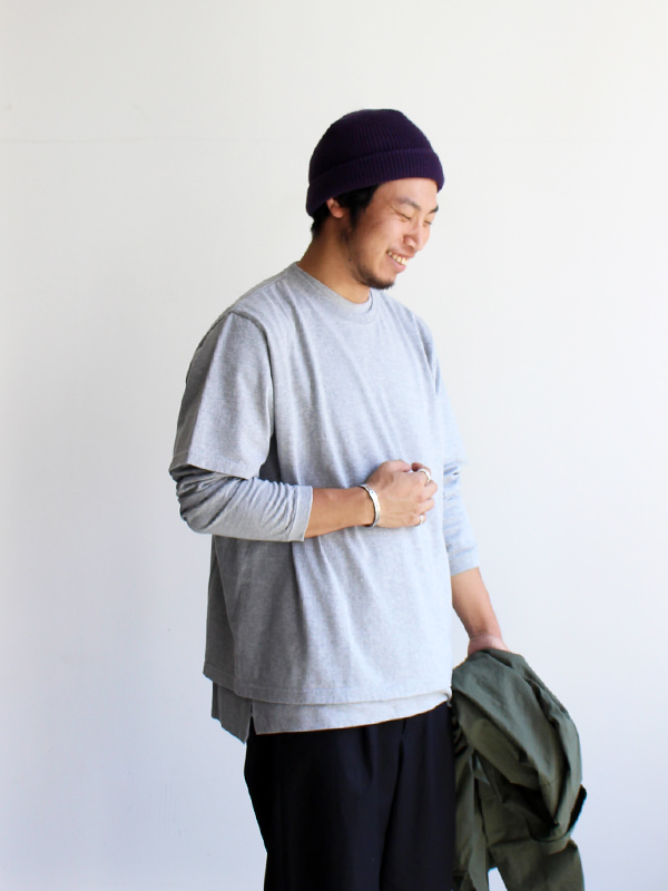 インナーに同ブランドのロングスリーブTeeとレイヤードして着用していただきたいですね。