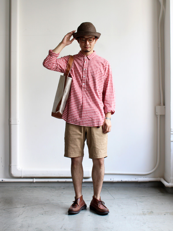 RINEN 80/1 typewriter Gingham Check Pullover Shirt