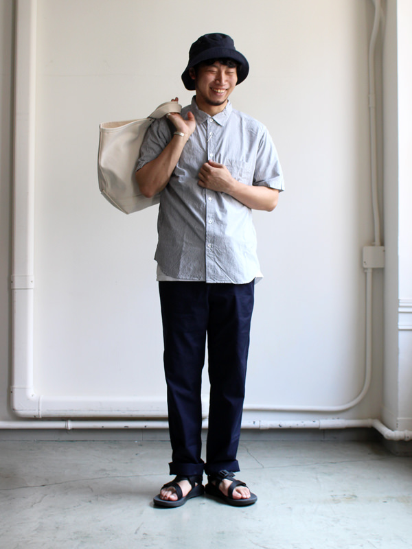 ハリ感のある軽い生地を使用しています。シンプルなデザインで使い勝手の良さが魅力的です。さらっとカジュアルにも綺麗なスタイルにも馴染むアイテムです
