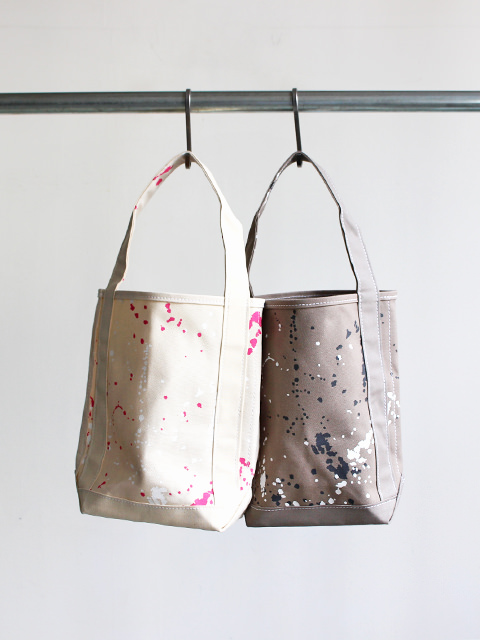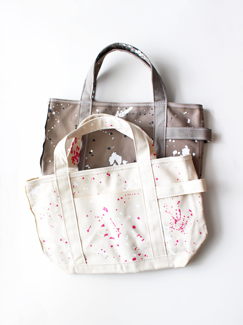 TEMBEAのラインナップのなかでも定番中の定番であるバゲットトートのスモールサイズぼペンキ柄です。6号キャンバス生地なので、使いこむほどに生地もやわらかく風合い豊かになります。生地にはパラフィン加工を施しているので、撥水性に優れ耐久性も抜群です。普遍的なデザインなので、ユニセックスで使っていただけます。