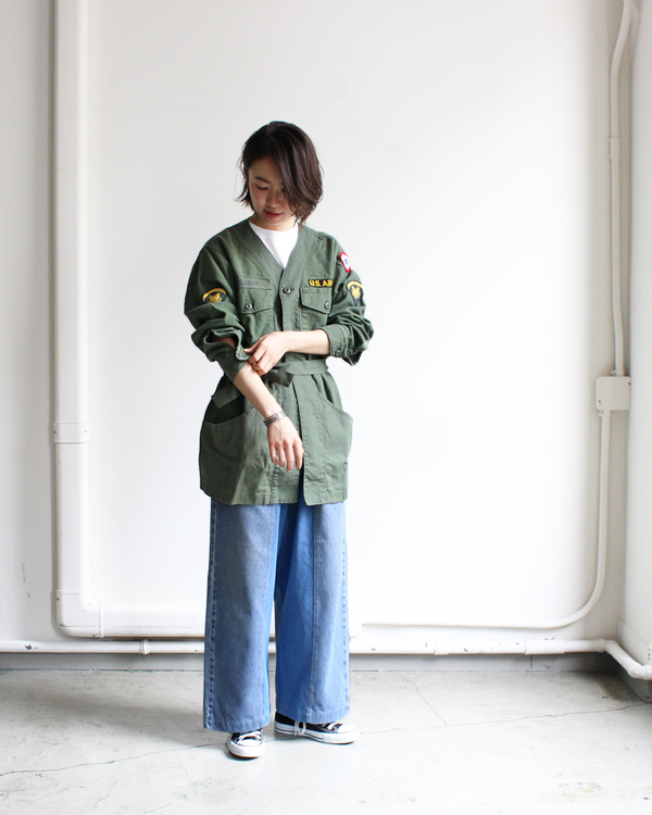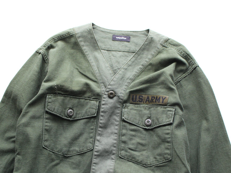USEDのUS ARMYファティーグシャツを解体し、ガウンへと再構築した、”リメイクアーミーシャツガウン”です。