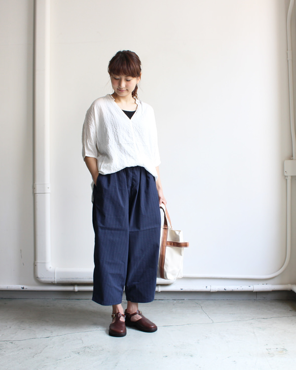 今年っぽくワイドなボトムスとの相性も良いアイテムです。