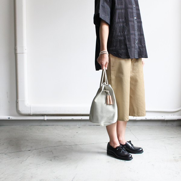 バゲット、雑誌、衣類、新聞など、入れるものを限定したバッグブランドです。すべての工程は手作業で行なわれ、日本国内の職人さんがミシンを使い、ひとつひとつ丁寧に作られています。使われている素材はシンプルなキャンバス生地でパラフィン加工(特殊ワックス加工)がされているため、通常のものより撥水性、強度に優れています。