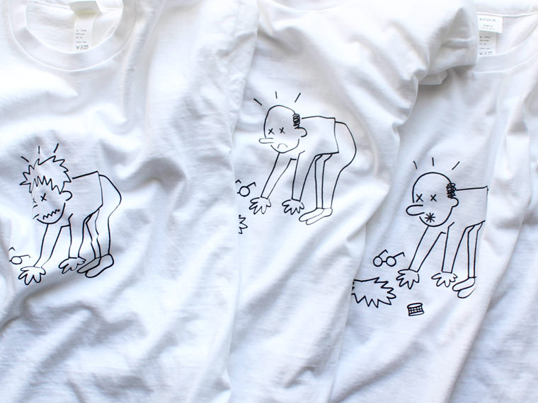 定番の丸胴クルーネックTeeにアーティストである加賀美 健さんのイラストしたプリントTeeです。